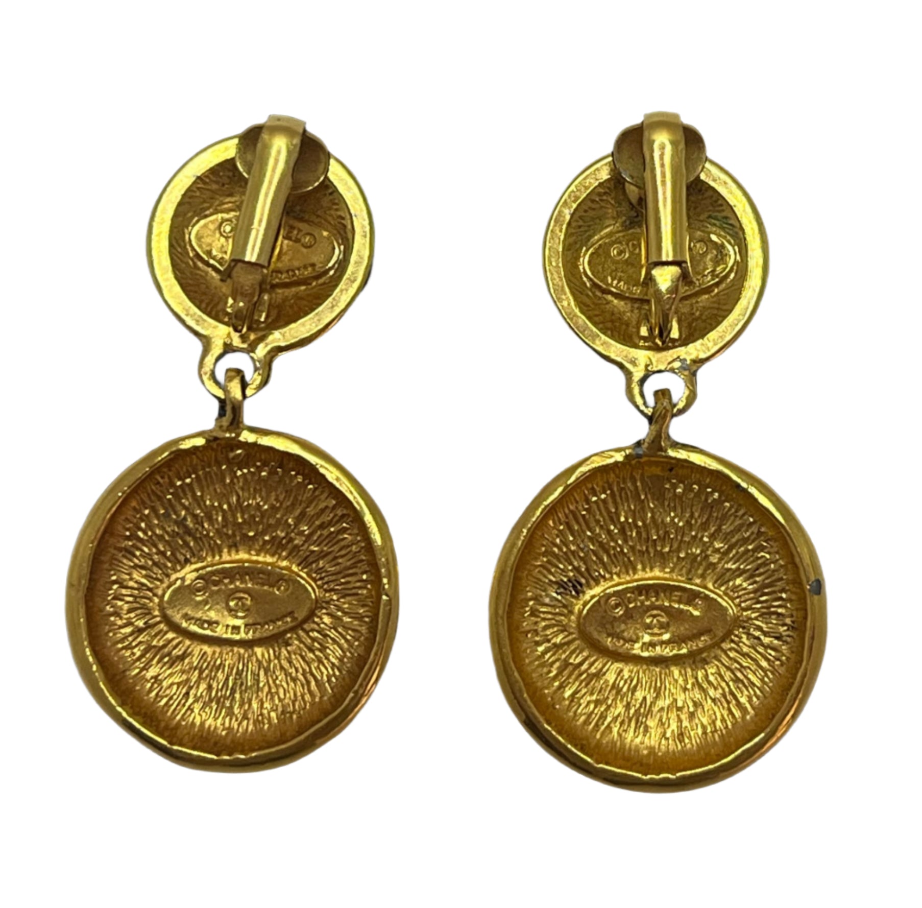 Vintage circa 1980s, gold-plated drop earrings with clip-on closure. Made in France.