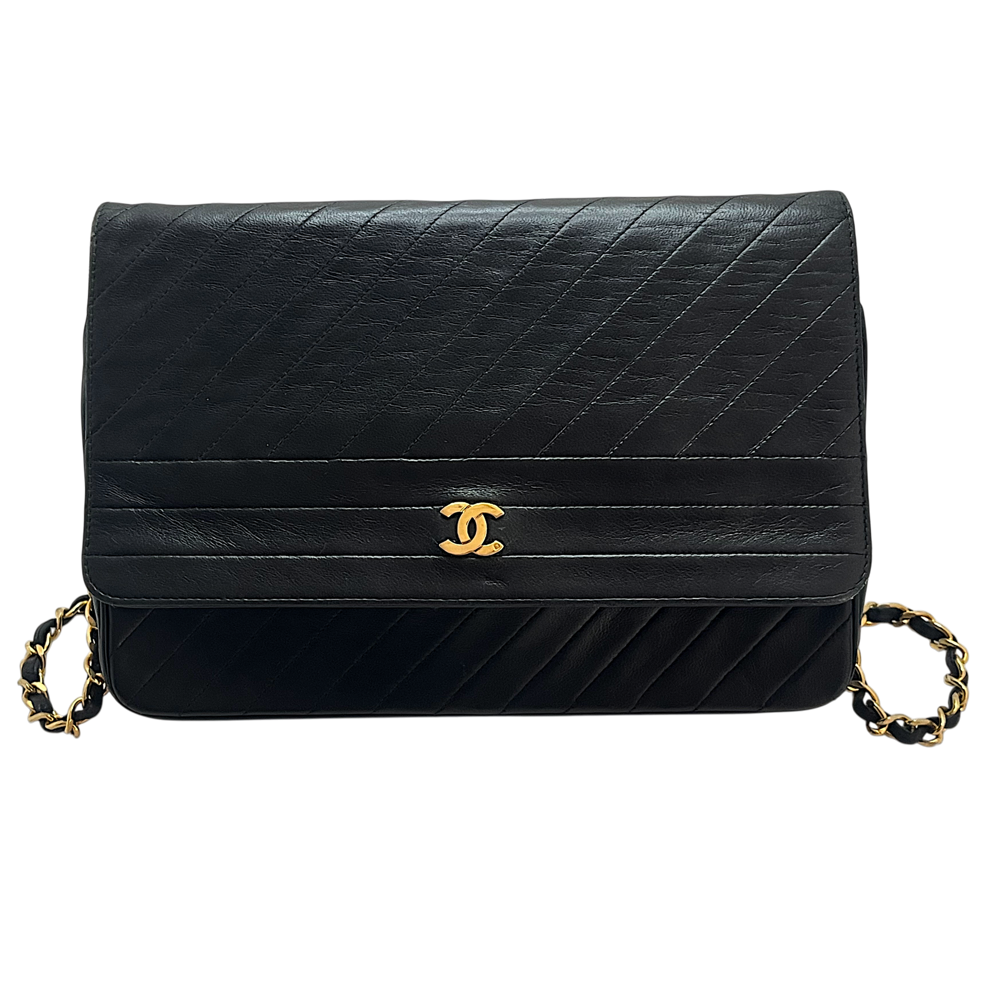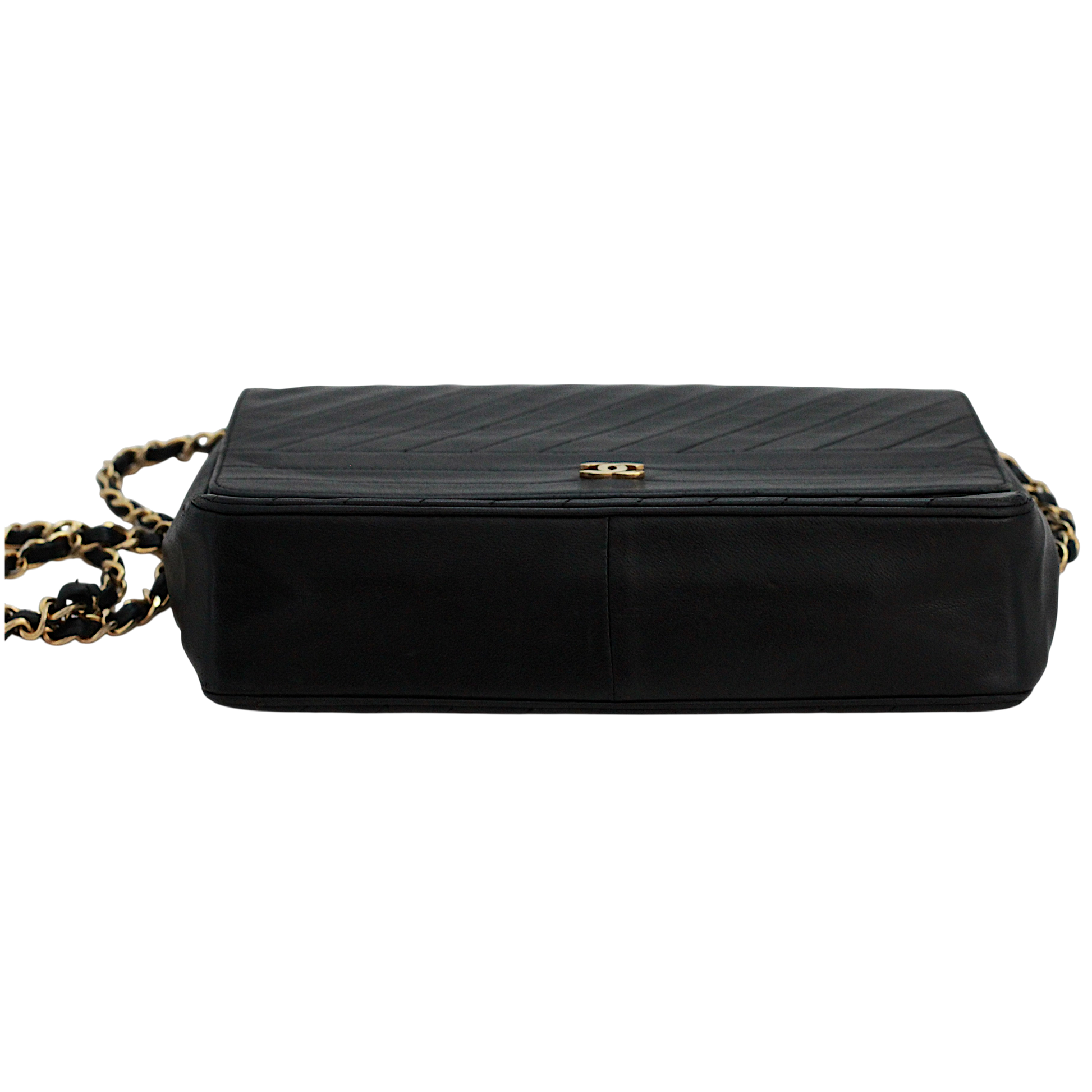 Chanel Black Lambskin Leather Flap Shoulder Bag | 1980's